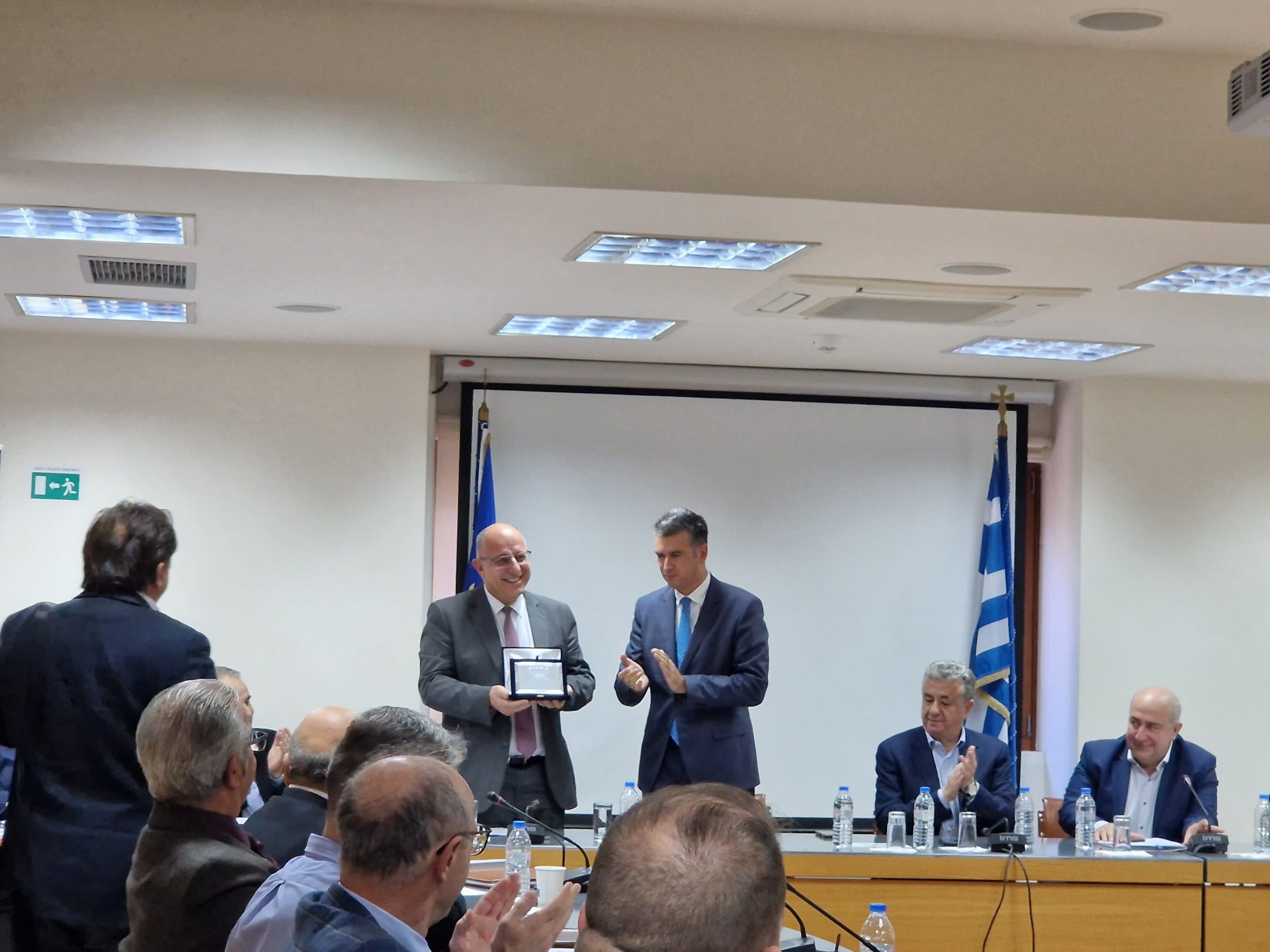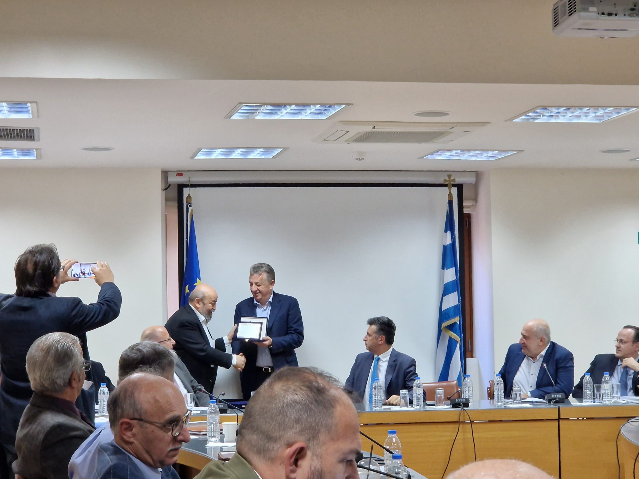 Στο πλαίσιο της συνδιάσκεψης, η Αναπτυξιακή Κρήτης απένειμε τιμητική πλακέτα στον κο Φωκίωνα Θωμά Αλγιανάκογλου για την πολυετή προσφορά του στον ΕΦΕΠΑΕ, ως παλαιότερο μέλος του Διοικητικού του Συμβουλίου. Την τιμητική πλακέτα επέδωσε στον κο Αλγιανάκογλου ο κος Σταύρος Αρναουτάκης, Περιφερειάρχης Κρήτης. Επίσης, τιμητική πλακέτα απονεμήθηκε και στον κο Γεώργιο Επανωμεριτάκη για την πολυετή προσφορά του στην Αναπτυξιακή Κρήτης, ως παλαιότερο μέλος του Διοικητικού της Συμβουλίου, την οποία επέδωσε ο Γενικός Γραμματέας Δημοσίων Επενδύσεων και ΕΣΠΑ κος Δημήτρης Σκάλκος.