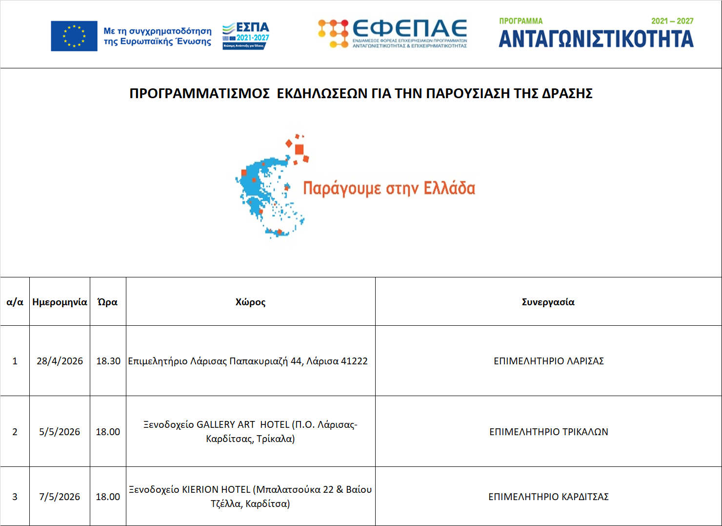 Ενημερωτικές Εκδηλώσεις ΑΕΔΕΠ για τη Δράση ΠΑΡΑΓΟΥΜΕ ΣΤΗΝ ΕΛΛΑΔΑ